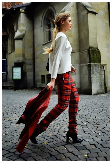 | Τρέχουμε με το καρό παντελόνι μας και ταυτόχρονα είμαστε και κομψές .Φοράμε ένα απλό μονόχρωμο t-shirt κατά προτίμηση άσπρο που ισορροπεί τέλεια Συνη Πηγη:getalocalife.blogspot.gr |